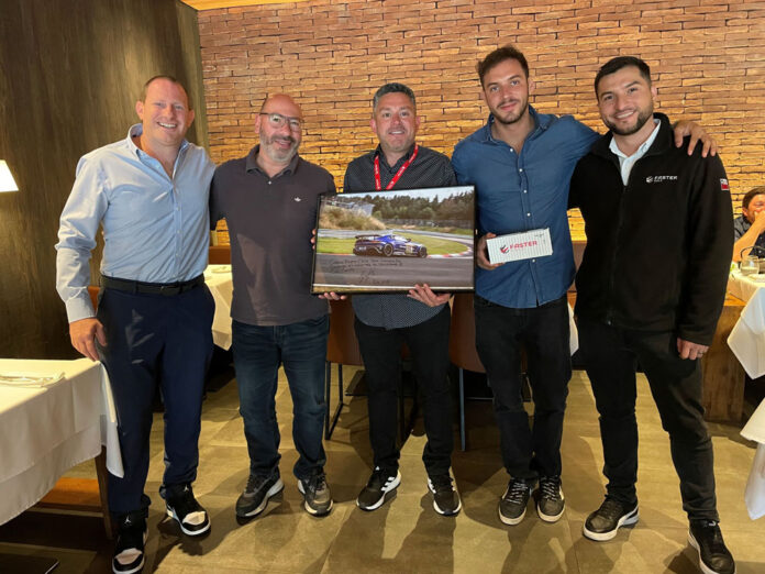 Como gesto de agradecimiento por el apoyo de la empresa, el piloto regaló a los representantes de la compañía una imagen firmada de su Aston Martin compitiendo en Nürburgring, reflejo de un vínculo que va más allá de lo comercial.