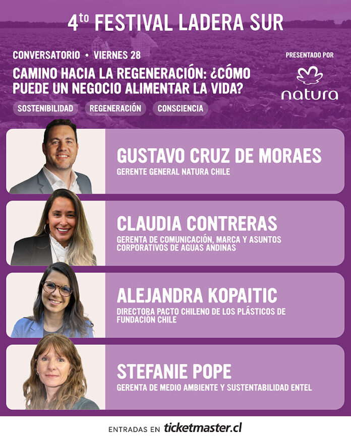 Bajo la consigna “Camino hacia la Regeneración: ¿Cómo puede un negocio alimentar la vida?”, la marca se propone abrir un diálogo sobre modelos de negocio que integran circularidad, innovación social y ambiental, y trabajo con comunidades. En esa línea, Natura compartirá escenario con Aguas Andinas, Entel y Fundación Chile, organizaciones que presentarán iniciativas y experiencias vinculadas al uso eficiente de recursos, la gestión de residuos y el trabajo con comunidades.
