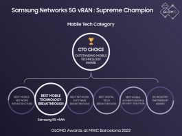 MWC22: El 5G vRAN de Samsung gana el premio CTO’s Choice y el Mejor Avance Tecnológico Móvil en los GLOMO Awards
